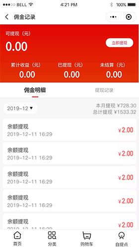 团长可在团长中心的佣金记录查看自己的佣金详情,并申请提现,后台审核结算微信打款